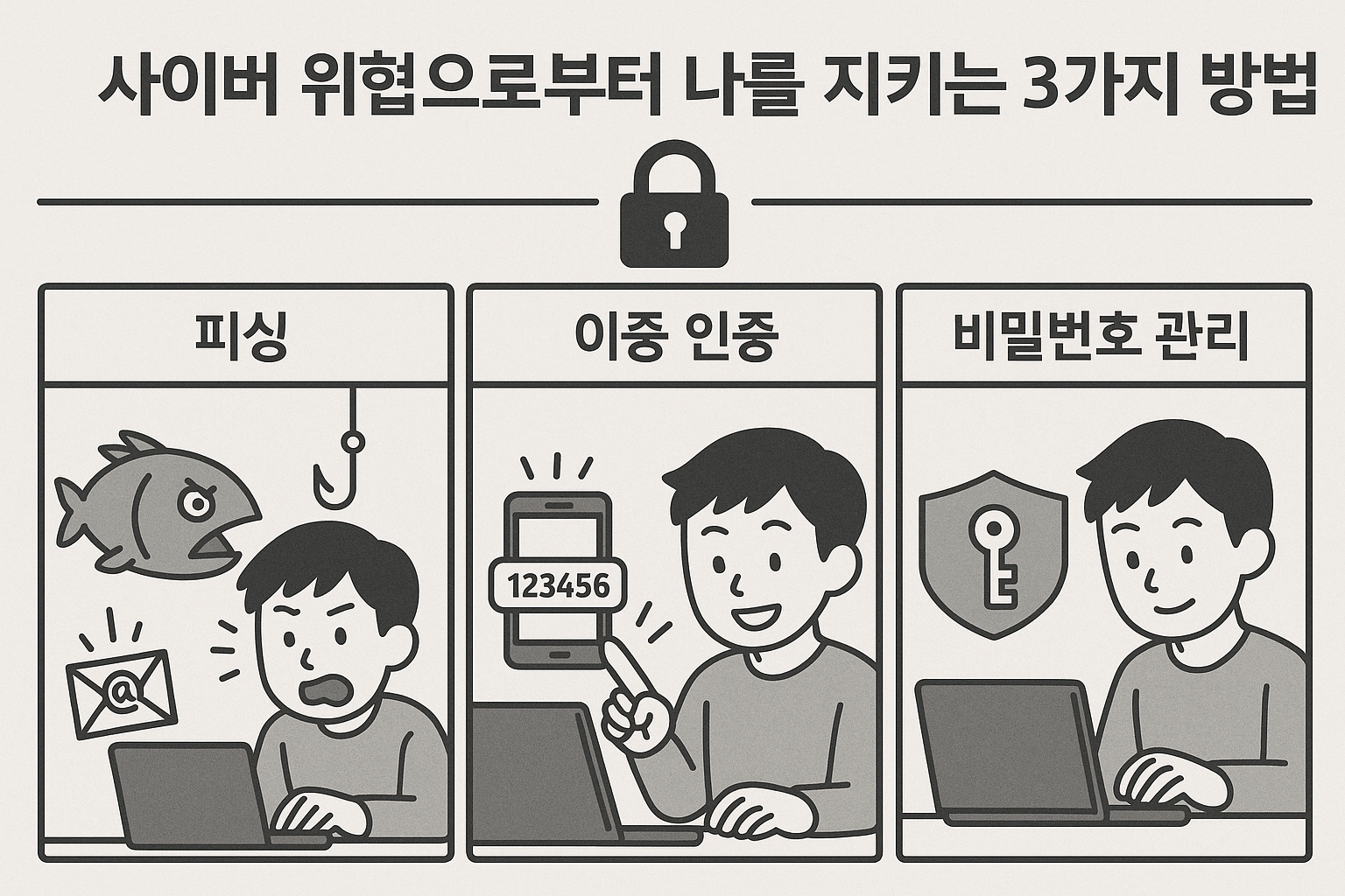 디지털 시대에 개인 정보와 자산을 보호하는 것은 더 이상 선택이 아닌 필수입니다. 매일 수많은 데이터 유출 사고와 피싱 공격이 발생하며, 해커들은 우리의 온라인 생활을 위협하고 있습니다. 하지만 너무 복잡한 기술적 지식 없이도, 몇 가지 간단한 습관만으로 사이버 위협으로부터 자신을 효과적으로 지킬 수 있습니다. 이 포스팅에서는 가장 흔한 위협인 피싱 메일을 구분하는 법, 계정 보안을 강화하는 이중 인증(2FA), 그리고 안전한 비밀번호 관리의 세 가지 핵심 방법을 소개합니다.