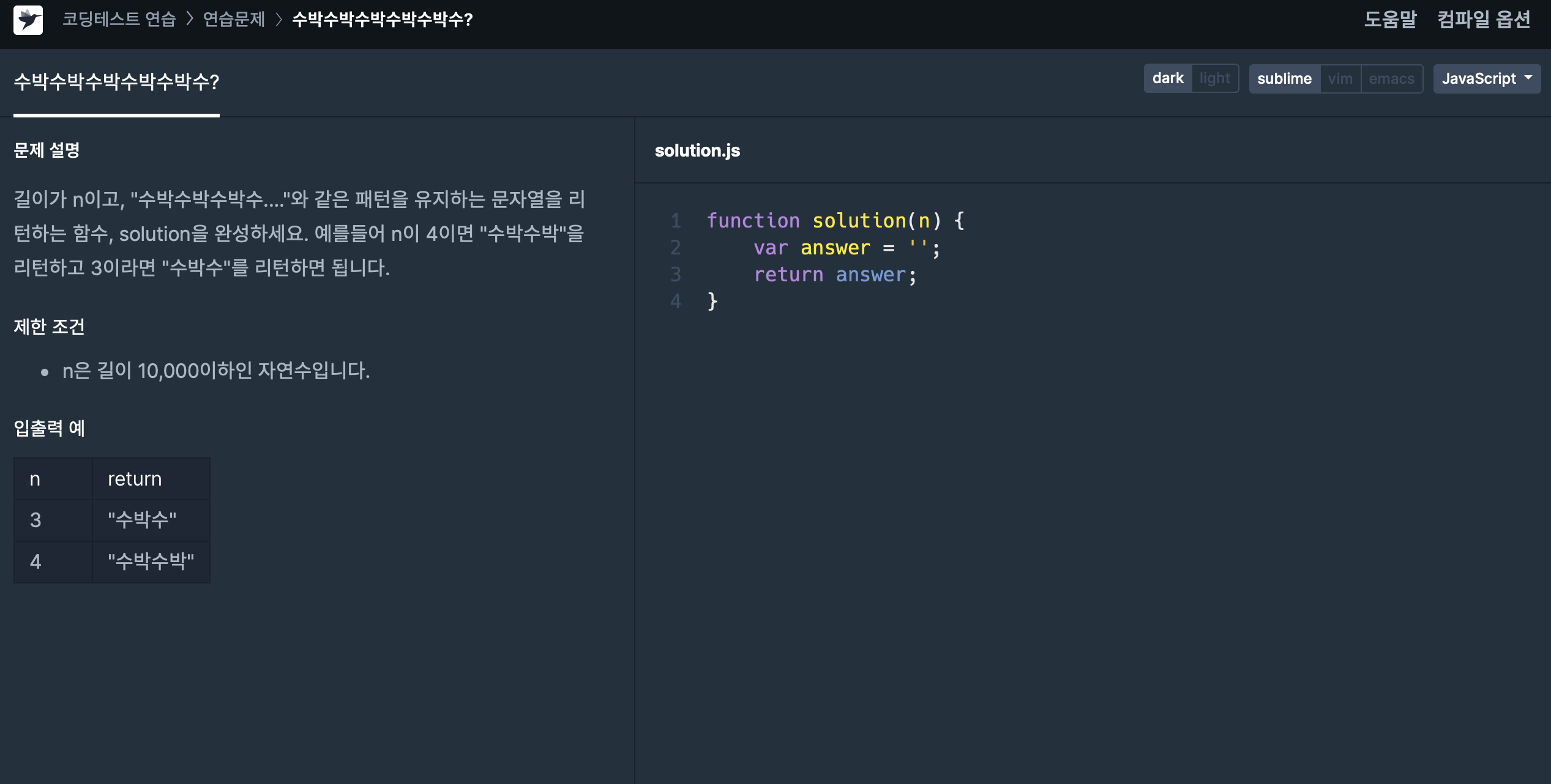 return n % 2 === 0 ? "수박".repeat(n/2) : "수박".repeat(n/2)+"수";