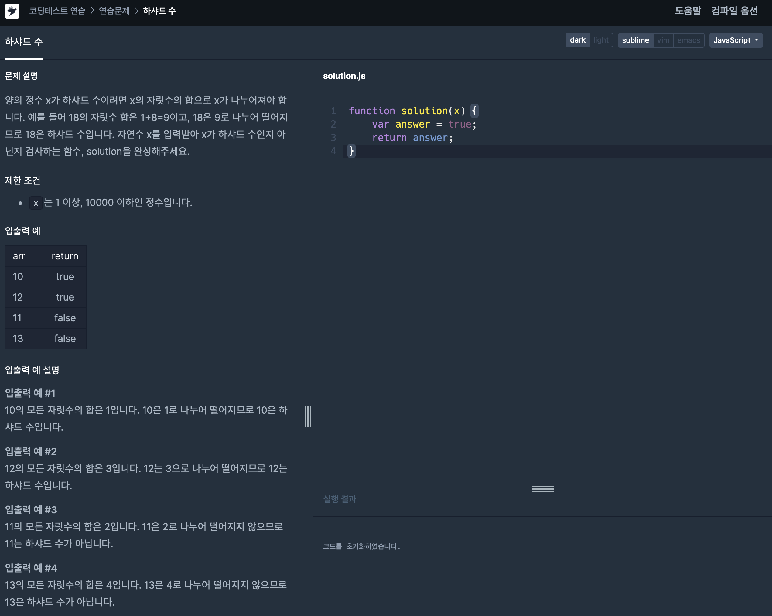 - 정수 x의 자릿수 합을 만들어야한다. 이를 위해 String()과 split()을 활용 x를 배열로 만들어 나눈다.